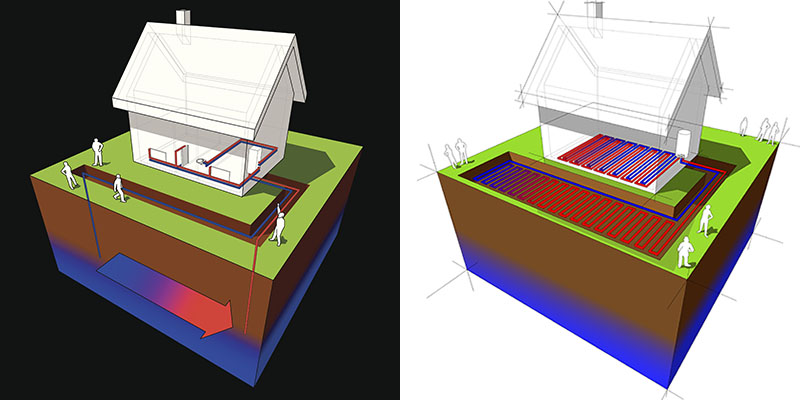 De aardwarmte kan via grondcollectoren vlak onder het aardoppervlak worden opgenomen (horizontale collector) of middels sondes die verticaal of schuin geboord worden in de bodem (verticale collector). Voor deze laatste optie is vaak een vergunning nodig en liggen de kosten ervan erg hoog.